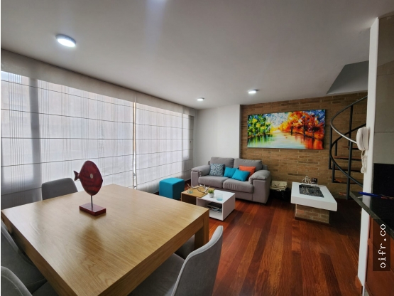 Pesos Colombianosarea 75 mts piso alto interior, duplex amoblado primer piso, sala, comedor, cocina, zona de lavandería baño auxiliar, Segundo piso habitación amplia, estar, un baño, Parqueadero doble, Canon Incluida Administración. apts c-dos