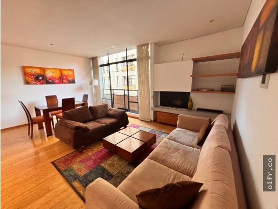 amoblado area 92 mts, dos habitaciones, dos baños completos, sala comedor con chimenea, cocina abierta, zona de lavanderia, dos parqueaderos independientes, deposito, edificio con squash, gimnasio, terraza con BBQ, zona Húmeda, salón de reuniones. canon incluida la administracion apts c-dos