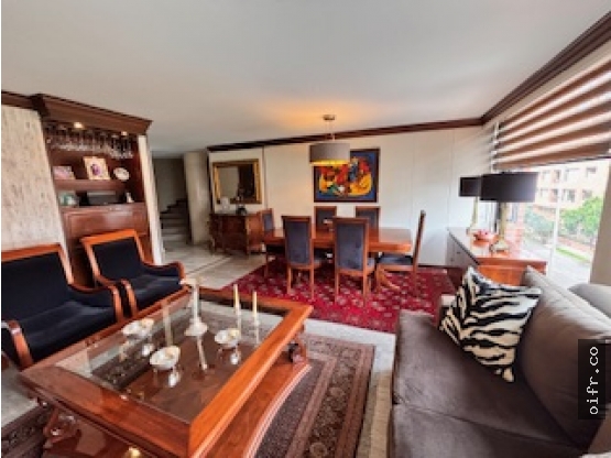 Todo es eléctrico, area 118 mts, piso alto exterior, tres habitaciones, la principal con baño privado y baño de alcobas, sala con chimenea natural, comedor, cocina cerrada, baño social, zona de lavanderia, cuarto y baño de servicio, dos parqueaderos en línea, deposito, edificio con planta de suplencia total, gimnasio, salón comunal, calderines, parqueaderos de visitantes, vigilancia 24 Horas, No tiene gas el edificio. apts c-dos