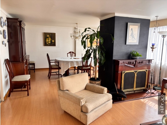 area 138 mts, piso alto exterior, 3 habitaciones, dos alcobas comparten baño y principal con baño propio, sala con chimenea, comedor, cocina cerrada y amplia, zona de lavandería, cuarto y baño de servicio, dos parqueaderos en servidumbre,