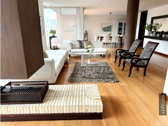 area 213 mts mas 24 mts de terraza, 4 habitaciones cada una con baño privado, hall de alcobas, estudio, sala con chimenea, comedor con balcon, baño social, cocina cerrada, cuarto y baño de servicio, 4 garajes independientes deposito, dos ascensores. apts c-dos