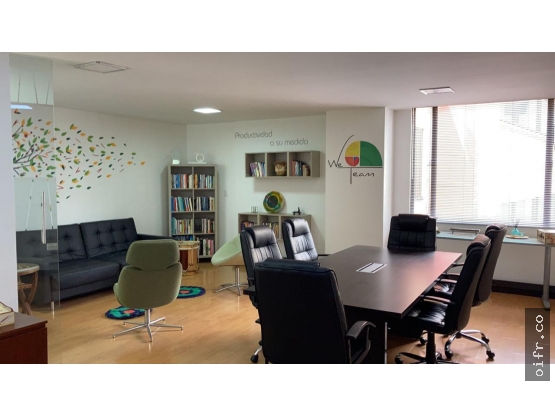 Area 50.80 mts, vendo oficina, exterior, dos ventanales, un baño, mueble con cocineta escondida, dos parqueaderos en linea, salón de conferencias, terraza para que los empleados puedan almorzar con hornos microondas, mesas y baños, parqueaderos de visitantes, cerca a la fundacion santa fe, apts - c- dos